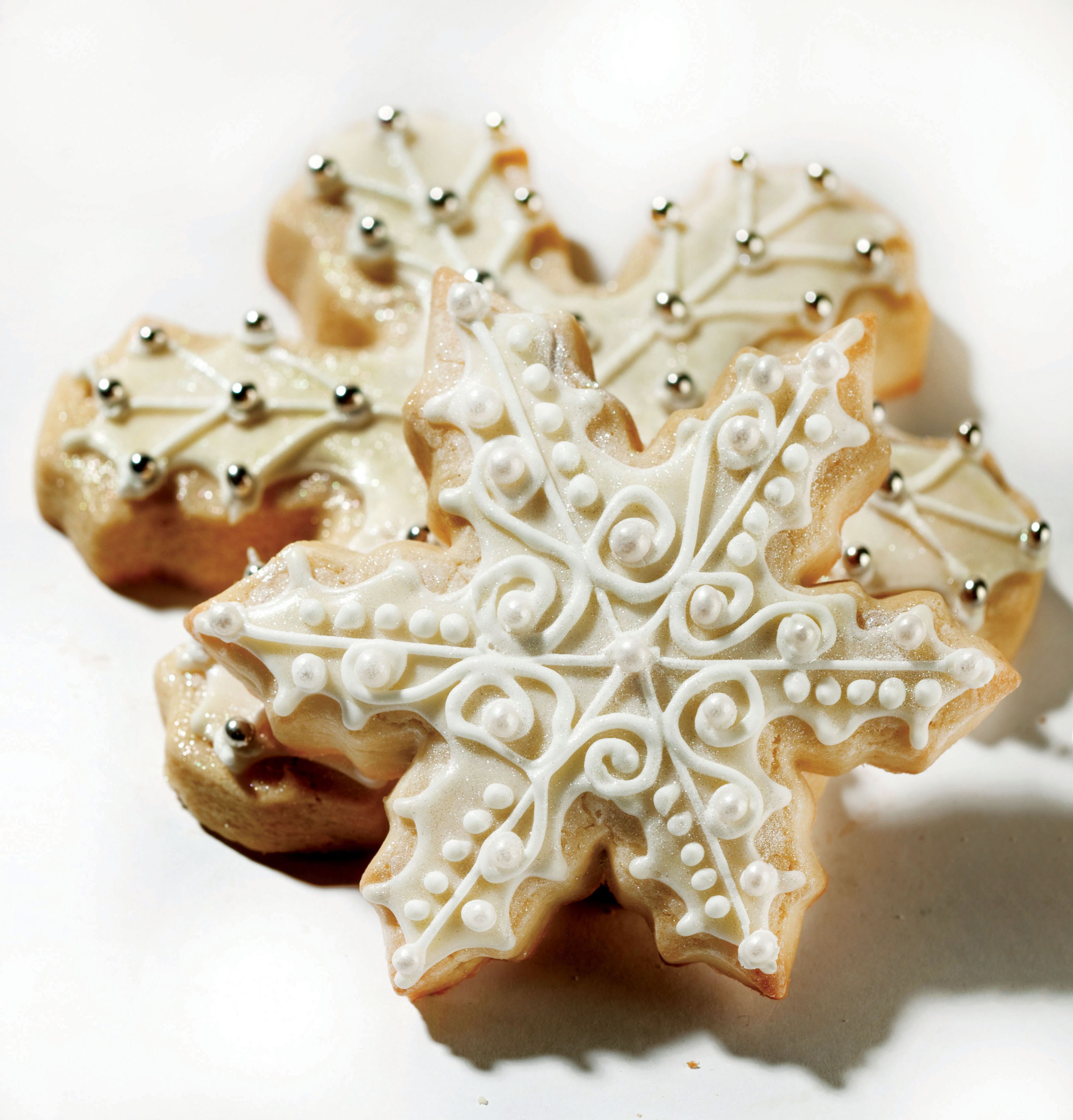 - Heat oven to 375 degrees. Let dough warm up slightly; roll out to ½ inch thick using powdered sugar (not flour) to stop it from sticking. Cut out snowflake shapes; bake on parchment-lined baking pans until just barely starting to brown on the edges, 12 to 15 minutes. Remove promptly from oven; let cool on the sheet pan, 2 minutes. Transfer to a wire rack to cool completely before decorating.