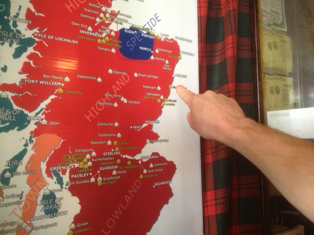 Alastair points to his hometown of Aberdeen on the map of Scotland he proudly displays at The Scottish Arms.