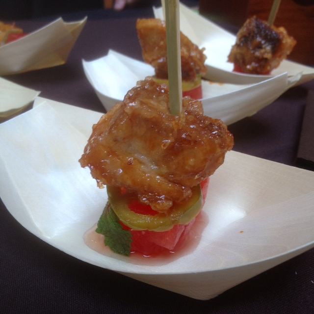 Among the many food and drink offerings, my favorite was the pork belly from Cleveland-Heath (with watermelon, jalapeño and mint leaf), shown below.